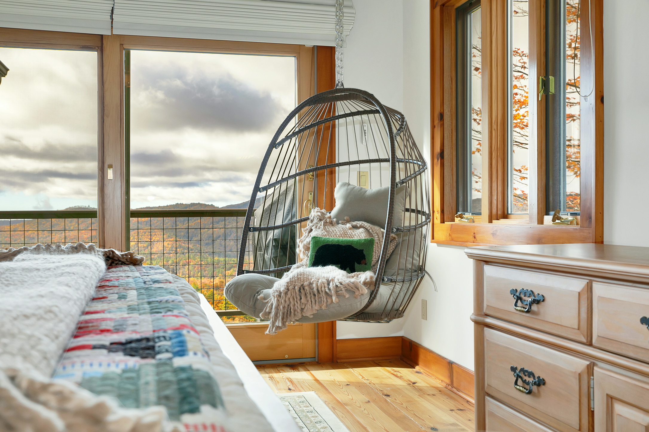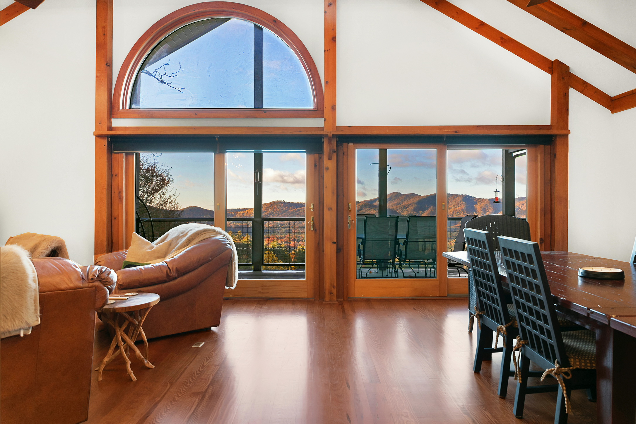 The view isn't just "mountains", it is a direct, sweeping line of sight to the iconic Whiteside Mountain and Chimney Top. These are the specific landmarks hikers travel hours to see, and you can drink your coffee in front of them every morning.